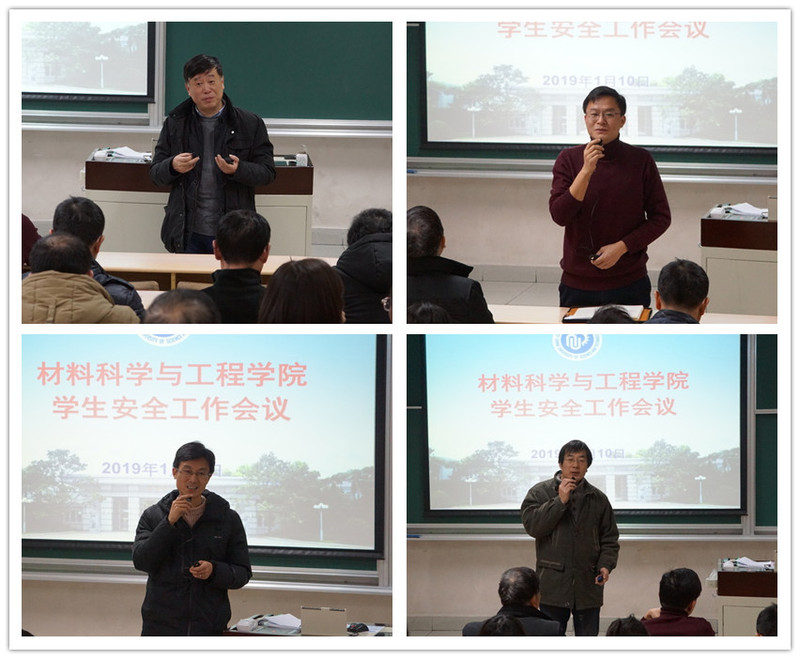 1月10日,材料学院在徐汇校区四教102召开了学生安全工作会议。学院党委书记唐颂超、副院长林绍梁(主持工作)、党委副书记戴诚安、副院长李欣欣,以及全体班导师、本科生辅导员、研究生专兼职辅导员参加了会议。会议由李欣欣主持。