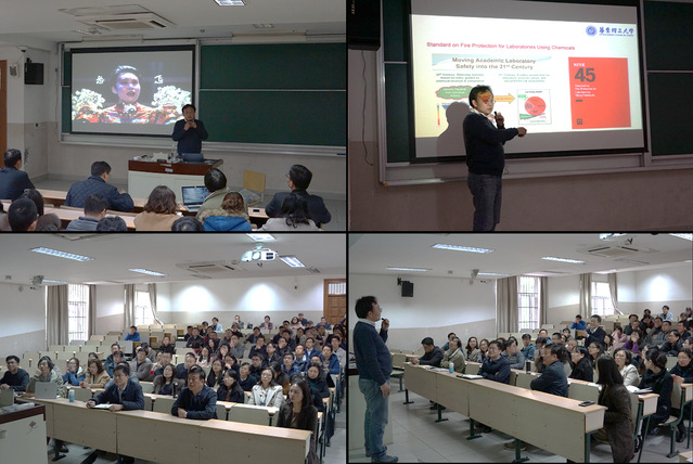 2019年4月4日,yl23455永利官网安全宣传会议在徐汇校区四教102室召开,学院党委书记唐颂超,副院长林绍梁(主持工作),及100多名教职工参加了本次会议。会议邀请了校安全办主任徐宏勇做实验室安全知识培训讲座。