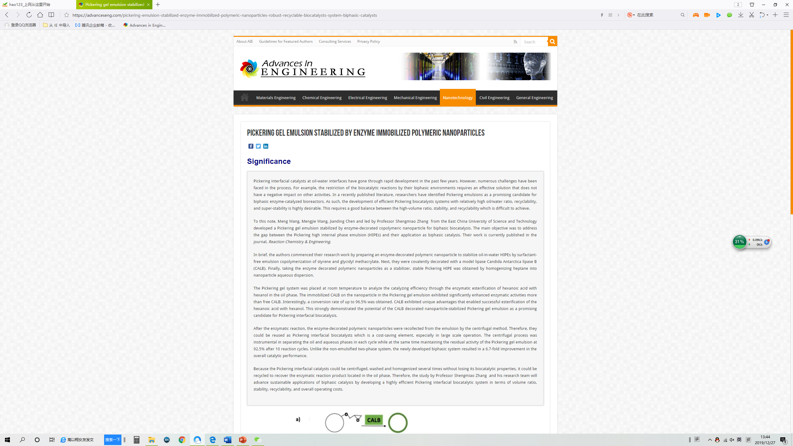 近日,国际著名工程学网站“Advances in Engineering”(简称AIE)公开报道了永利官网yl23455永利官网章圣苗副教授课题组在酶固定化聚合物纳米粒子稳定的Pickering凝胶乳液两相酶催化体系的研究成果。