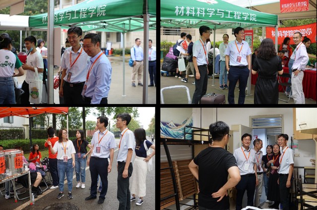 材料学院共设有五个迎新点位,学院师生热情、周到、有序地开展迎新工作。上午,院长、党委副书记林绍梁、副院长顾金楼、副书记戴诚安、院办主任顾婷等来到迎新现场,与师生交流,随后走访新生宿舍,了解新生情况,勉励新生勤奋学习,尽快适应大学生活。同时,学院班导师、辅导员、督导们与新生进行面对面交流,答疑解惑。