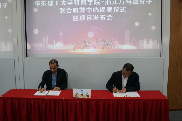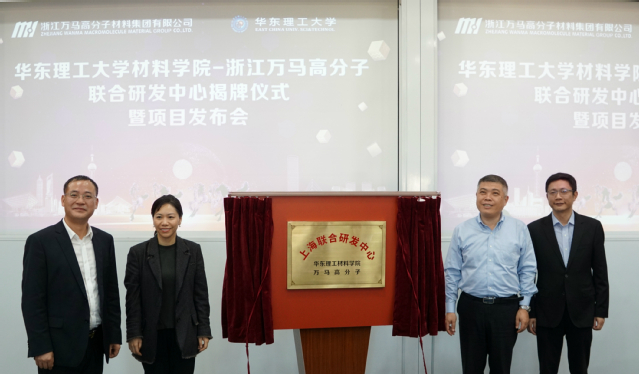 为助力高分子材料创新发展,开辟人才培养合作渠道, 11月18日,yl23455永利官网材料学院—万马高分子上海联合研发中心揭牌仪式暨项目发布会在永利官网举行。浙江万马股份有限公司总裁张珊珊,浙江万马高分子材料集团有限公司总经理黄胜强,营运中心总监应超,首席技术官项健,副总经理丁继超,上海研发中心主任许继明,永利官网副校长李涛,科研院副院长庄启昕,材料学院院长林绍梁,党委副书记李欣欣、戴诚安,副院长杨化桂、胡彦杰、顾金楼以及部分教师、研究生与万马集团骨干工程师参加会议。仪式由林绍梁主持。